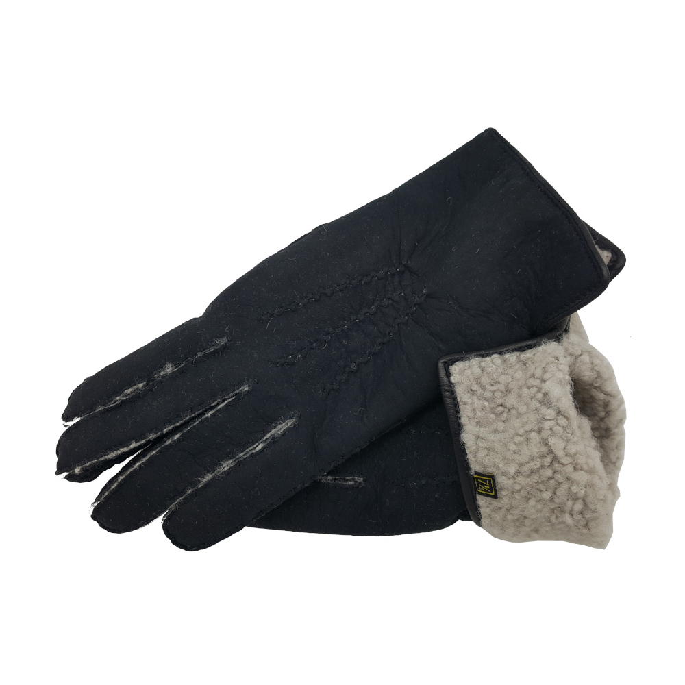 Le Gant en Mouton Retourné, Ciré, Noir