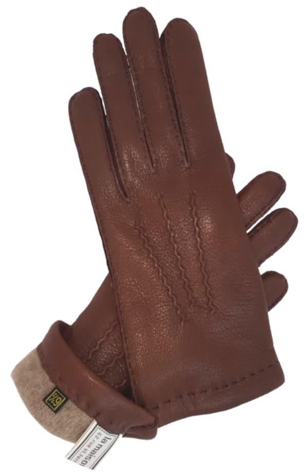 Ces gants en cuir de cerf grainé sont plus épais et résistants que des gants en cuir d’agneau. Doublés en cachemire doux, ils sont particulièrement chauds car vos mains sont protégées du froid par le cachemire et l’épaisseur du cuir. Cousus main, toutes les coutures sont extérieures pour plus de confort. Très polyvalents, ils habilleront vos tenues décontractées ou plus classiques.